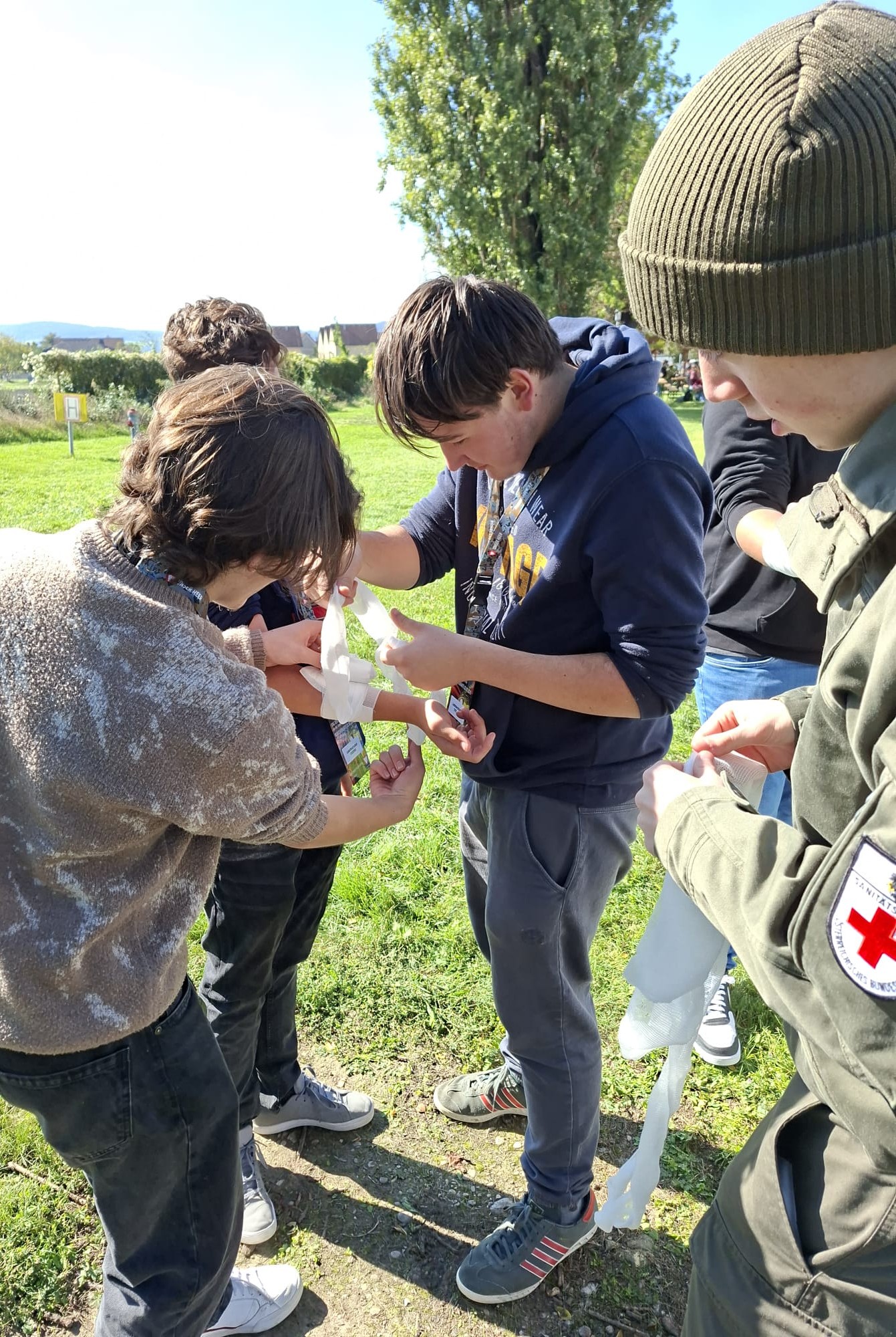 Bei zahlreichen Stationen konnten unsere Schülerinnen und Schüler selbst aktiv werden – etwa beim Erkunden von Fahrzeugen, beim Ausprobieren der Schutzausrüstung oder bei der Selbst- und Kameradenhilfe.